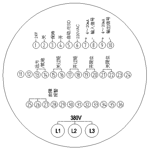 液晶屏在运行状态下数字显示阀门位置百分比,调试状态下的显示用形象的字母符号。